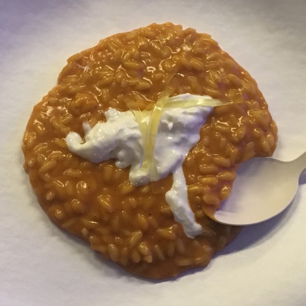 Iniziamo dai pomodorini. Cuoceteli in una placca da forno con sale, pepe, olio extravergine d’oliva e timo a 250°C, fino a quando la pelle non sarà ben arrostita; quindi, frullateli e passateli al setaccio. Successivamente, scaldate in una casseruola 200g d’olio extravergine di oliva con 2 scalogni puliti e tagliati a pezzi fino a raggiungere 70°C. Quindi, spegnete il fuoco, coprite con una pellicola alimentare e lasciate raffreddare. In una ciotola a parte, preparate la gelatina di Limoncetta di Sorrento: unite lo zucchero a velo e l’agar agar, disperdeteli nell’acqua gasata e fatela bollire. Aggiungete Limoncetta di Sorrento e fate bollire per un altro minuto; infine, stendete su una placca da cucina dello spessore di circa 1 mm e fate raffreddare in frigorifero. Adesso, tostate il riso in poco olio allo scalogno per 2 minuti, bagnate con il brodo vegetale e portate a metà cottura: quindi, aggiungete la crema di pomodorini e terminate la cottura aggiungendo brodo, se necessario. Mantecate con il burro e il formaggio grattugiato fino ad ottenere la classica consistenza all’onda. Per concludere, impiattate il riso su un piatto piano e guarnitelo con qualche fiocco di stracciatella e la gelatina di Limoncetta di Sorrento tagliata a julienne.