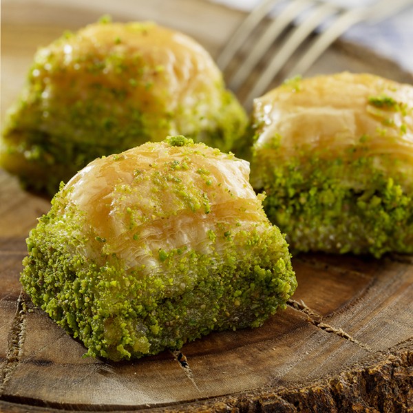 Versate in un pentolino l’acqua, il succo di Limone IGP di Sorrento, 150 g di zucchero e il miele, portate a bollore e fate cuocere per qualche minuto; quindi, lasciate raffreddare lo sciroppo in frigo per 1 ora, fate sciogliere il burro e lasciatelo raffreddare. Tritate finemente i pistacchi e mescolateli con la cannella lo zucchero rimanente. Imburrate e rivestite con carta da forno una teglia, dopodiché stendete un foglio di pasta fillo e spennellatelo con il burro fuso. Mettete sopra un altro foglio di pasta fillo e ripetete l’operazione, fino a metterne in tutto 5. Versate parte del composto di pistacchi, cannella e zucchero e aggiungete altri 2 fogli di pasta; procedete ricoprendoli con altro composto (pistacchi-cannella-zucchero) e completate con altri 7 strati di pasta fillo, spennellando sempre con il burro. Infornate per 20 minuti a 180°C, poi alzate a 200°C e cuocete per un altro quarto d’ora. Infine, cospargete il baklava con lo sciroppo e completate aggiungendo il composto di pistacchi, zucchero e cannella. Tagliatelo a “bocconcini”.